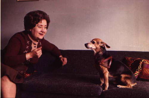 Con el perrito Chipaco de su amiga Ketty Buschiazzo