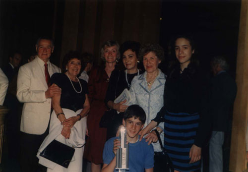 Parte de su familia Corvalán junto a Ketty Buschiazzo y Nelly Menotti recibiendo el premio de la Fundación Konex otorgado a María Luisa Anido en 1989